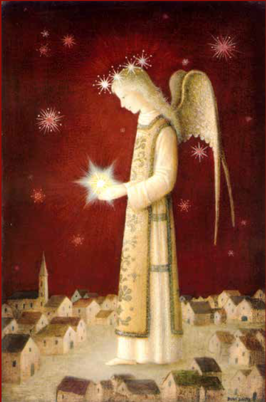 Carte de Noël Bradi Barth – Vierge à l’Enfant et lys blanc