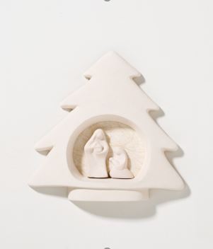 La Nativité, représentée dans un sapin de Noël, a été fabriquée à la main en argile blanche réfractaire avec beaucoup de dévotion en Toscane (Italie).